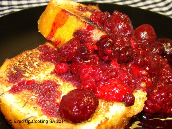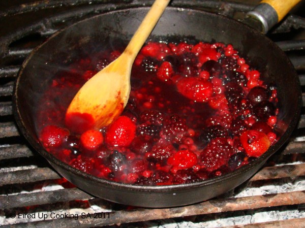 The fire gives the cake a lovely smokiness, and the slightly crisp toasted cake is just gorgeous with the tart berries.  It was delicious – hope you’ll try it soon!