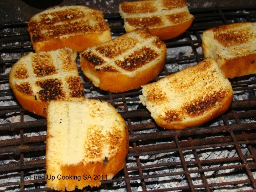 • Place the slices on the grid over hot coals and toast until crisp and slightly browned