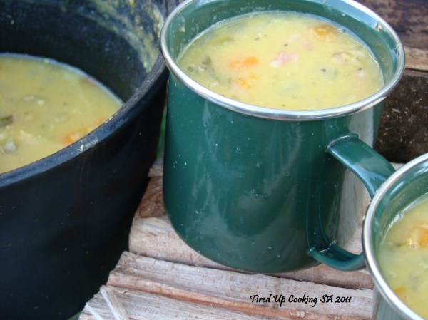 If you are making this on a braai fire, serve in mugs, whilst getting the fire ready to braai a steak.