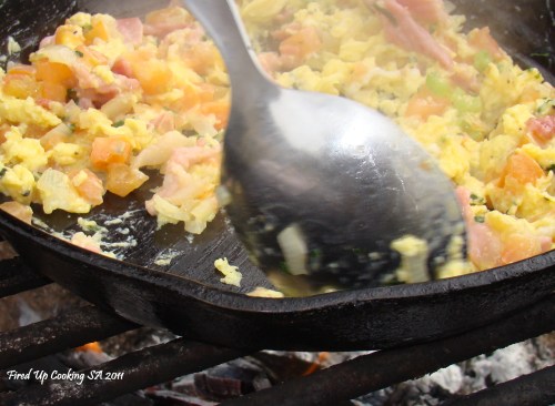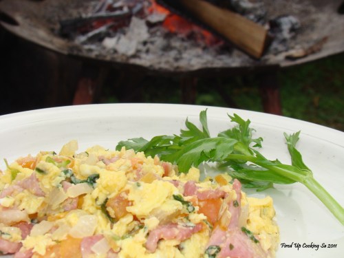 If you are camping this makes a very tasty breakfast, cooked over gentle flames on the braai.