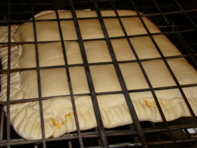 • Gently lift the dough onto the braai grid, and close and lock it