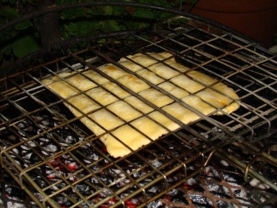 • Bake over very hot coals, turning frequently until crisp and puffed and golden